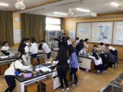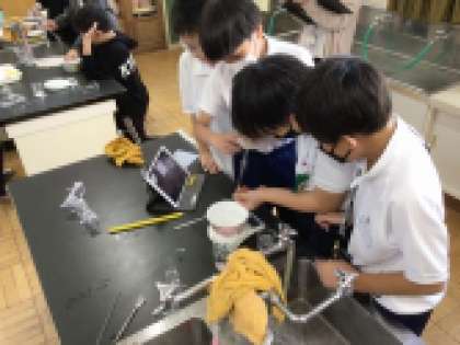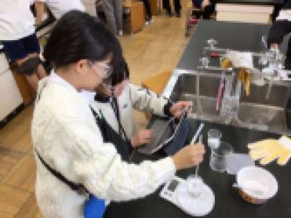 5年生は理科の学習で「もののとけ方」について勉強しています。予想を立て、実験を行い、とけ方について分かったことをまとめていきます。正確な結果が出るように慎重に実験を進めています。