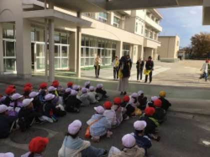 地域ボランティアの方の協力を得て、1年生が地域の公園に出かけます。テーマは「あきとなかよし」、落ち葉や木の実を探し、季節の変化に気づき、自然を満喫します。