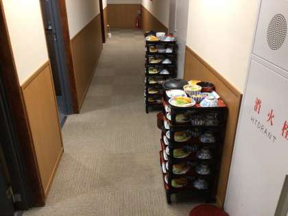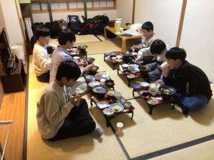 夜ごはんは部屋ごとで食べました。食べきれないほどの料理でした。