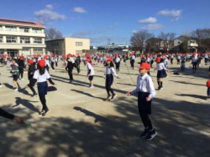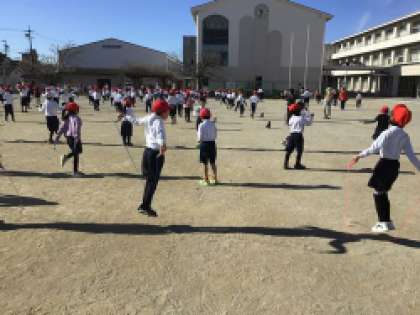 体育委員の子どもたちが司会進行をして、楽しい時間になっています。BGMに合わせて元気よく跳ぶ姿はすてきです。