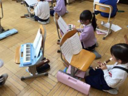 3年生は、リコーダー、ピアニカに分かれてキラキラ星などの曲を演奏しています。メンバーと息を合わせて演奏することはむずかしそうですが、みんなで楽しく練習ができています。