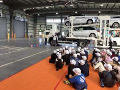 地域の企業であるトヨタ輸送株式会社さん、豊田市の協力のもとに、3年生が交通安全教室を行いました。大型トラックの内輪差は乗用車よりも大きく危険であることを見せてもらいました。また、運転席に乗り込んで、まったく見えない死角を体験しました。これからも交通安全に気をつけていきたいです。