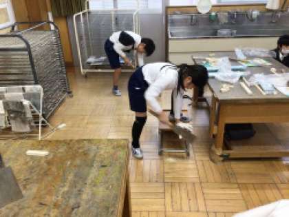 4年生は、図画工作でノコギリを使って木を切っています。鉛筆で引いた線に沿って切るのは大変です。切った後は紙やすりで形を整えます。さて、どんな作品になるのでしょうか、楽しみです。