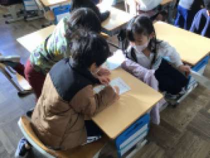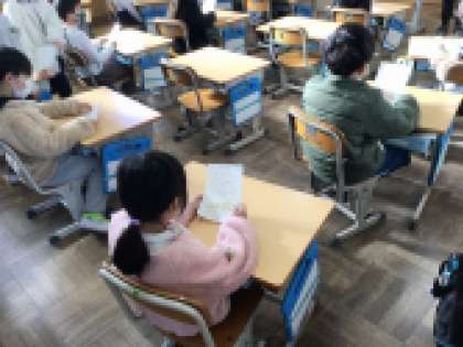 おもちゃ教室のお礼の手紙を真剣に読んでいました。手紙には、1年生の「ありがとう」の気持ちがいっぱい書いてありました。2年生、よかったね!