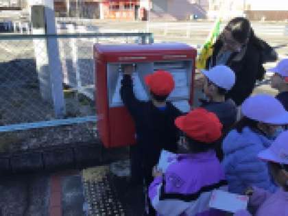 1年生は年賀状を書き、学校の近くにある郵便局へ出しに行きました。お家に届くのが楽しみですね。