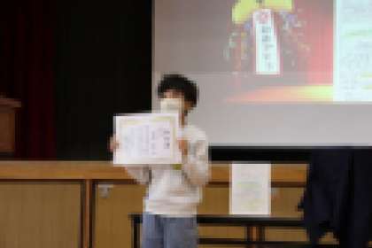冬休み前の全校集会では、校歌斉唱、大美山賞・のりものデザイン展の表彰、校長先生の話、生活主任の先生の話、プチボラ美山隊からのプレゼントが行われました。明日からは冬休み、元気に過ごしてくださいね。
