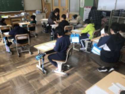 心を落ち着かせ、筆や鉛筆の動きに注意しながら書いています。納得のいく字が書けたかな?