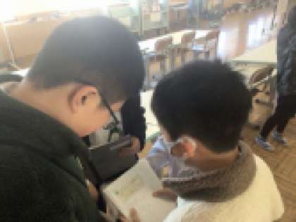 5年生が算数の授業で、自分の解き方を友達に説明し合っていました。相手に伝わるように説明することで、自分の考えを深めていました。