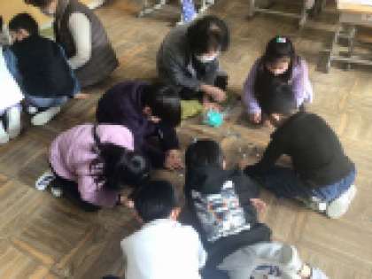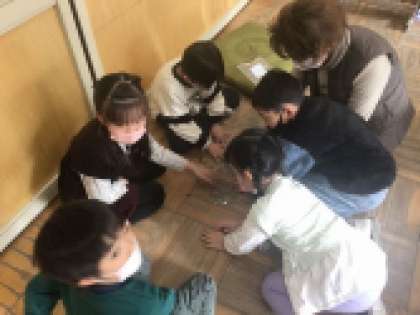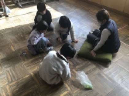 おはじきの遊び方をたくさん教えてもらいました。顔をつき合わせて楽しく遊びました。