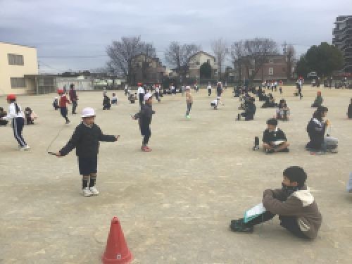 寒い中、全力でがんばりました。5年生は2年生のとんだ回数を数えながら応援をしました。やさしい5年生です。