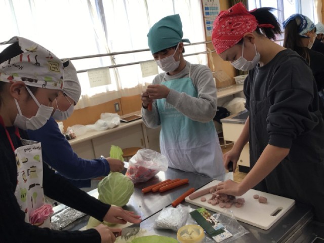 今週、6年生は調理実習を行っています。材料を切る様子は、みんな真剣です。心を込めて作った料理は特に美味しく感じたことでしょう。