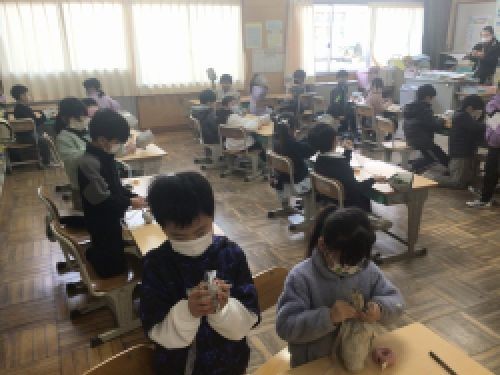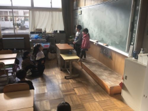 入学説明会では新1年生との交流会があり、1年生は新聞紙でけん玉を作り一緒に遊びます。新1年生を迎える準備をみんなでしました。