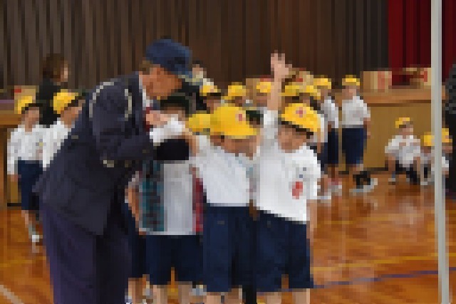 交通安全協会の方、浅井市議会議員にお越しいただき、1年生の交通安全教室が開かれました。