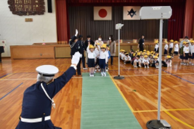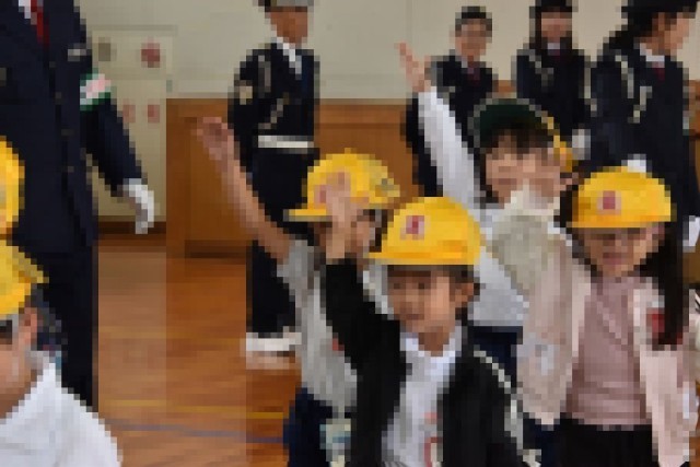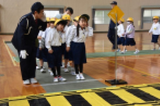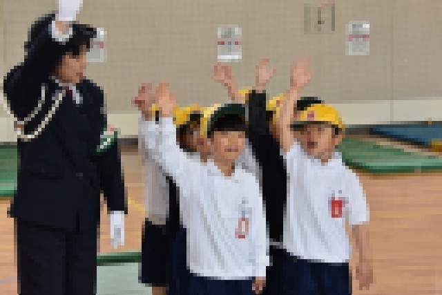 「手を挙げて、右、左、右、車よし!」と元気にかけ声を言いながら、学習をしていました。