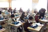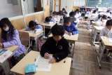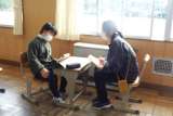 英語のスピーキングテスト。みんな少し緊張気味。自分の原稿を見ながらも、先生との...