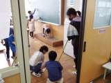 1年生も清掃に頑張っています。6年生の子たちが助けに来てくれ、一緒に活動してい...