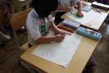 図工で「まぼろしの花」の作成が始まりました。絵のぐを使った様々な技法を学んだ子...