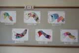 図工「絵のぐ+ふで+水=いいかんじ」で取り組んだ作品を教室などに掲示しています...