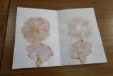 1年生は成長したアサガオの花を使って押し花にしました。この押し花を使って、作品...