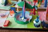 3年生の廊下や広場には、図工で作った「くるくるランド」の作品が展示されています...