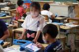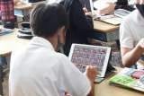 1年生もタブレットの使い方に慣れてきました。この日は、タブレットを操作して、算...