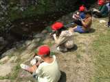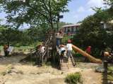 クラフトづくりが終わり、時間に余裕があったのでアスレチックで遊んだり、川で生き物...