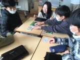 昔から伝わる遊びを教わりながら、一緒に楽しむ1年生の子どもたちとお年寄り双方の笑...