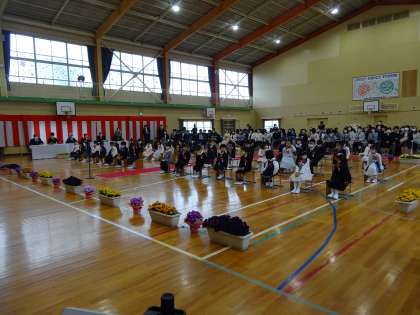 本日、元城小学校第52回入学式を行いました。新入生は46名、全校児童280名で令和5年度がスタートしました。新入生のみなさんはちょっぴり緊張気味でしたが、落ち着いて入学式を過ごすことができました。小学校生活は6年間です。一人一人が大きく成長し、6年後ふり返ったときに元城小学校でよかったと思える学校にしていきましょう。
