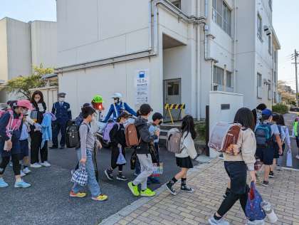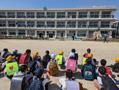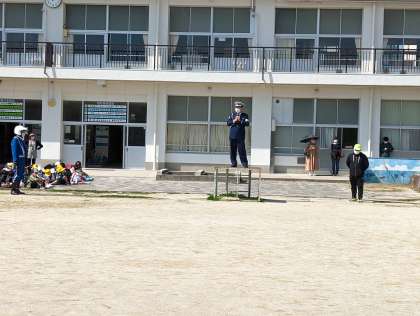 4月7日(金)に各通学団ごとに分かれて、通学団会を開催しました。新年度のスタートであり、今日は豊田警察署交通課のみなさんにご来校いただき、交通安全についての講話、下校の見届けを行っていただきました。学区内には大きな道路があり、車だけでなく自転車や歩行者の交通量も多いです。自分だけでなく、周囲の人の安全も考えながら登下校してくださいね。