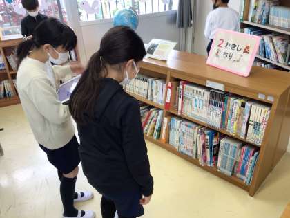 カードに書かれた本を探す場面では、なかなか見つけられずに苦労している子も多かったです。最後はクラス全員で友達を助けながら探している姿も見られました。(担任も最後まで見つけることができず…子どもたちが探すのを手伝ってくれました。)