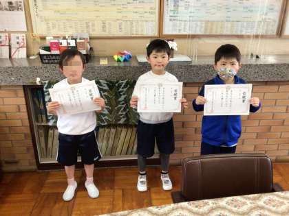 今日は、1年生の3名、2年生の2名に若鯱賞を手渡しました。