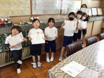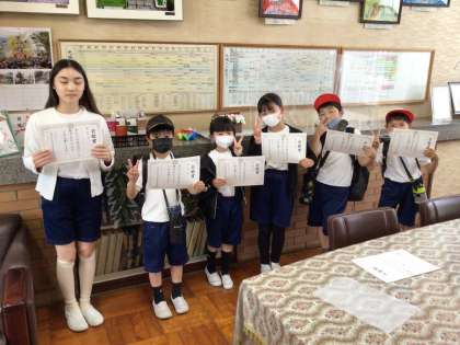 今日の若鯱賞は、1年生の3名、4年生の6名、5年生の1名、5年1組のみなさん、6年生の2名に手渡しました。