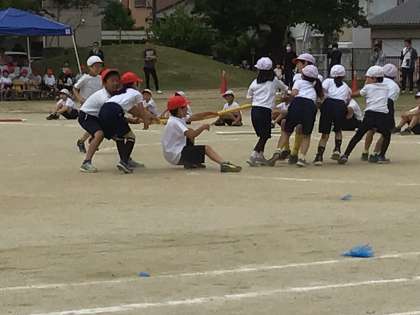 中学年の競争遊戯「綱取りパワー」です。