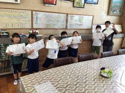 今日は、1年生の4名、2年生の1名、5年生の5名、6年生の4名、5年1組のみなさんを若鯱賞として表彰しました。