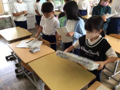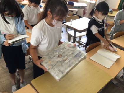 4年生 社会科 ごみの学習 公開日 2023/06/19 更新日 2023/06/19 各学年から リサイクルステーショで集められた、アルミ缶やペットボトルがどのようにリサイクルされていくのかを、映像や実物で確かめながら学習しました。リサイクルされる過程で、何度も人の手で分別されるのを見て、きちんとルールを守っていれば、もっとスムーズにリサイクルできるのにと思いました。
