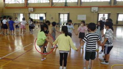 まず体育館に集まり、始めの会の後、ゲームを楽しみました。