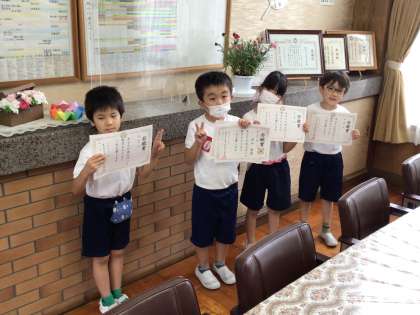 今日の若鯱賞は、2年生の4名に賞状を渡しました。