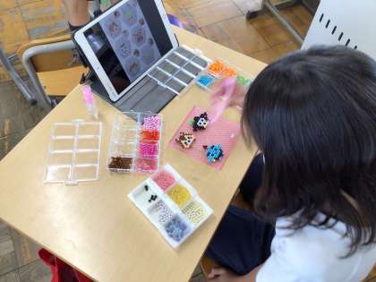 4年生以上の児童が取り組むクラブ活動がありました。将棋盤をじっくりと眺め、次の一手を真剣に考える姿、アクアビーズを使って思い思いの作品を創作する姿、小物を入れる袋を製作するためミシンを操る姿など、普段あまりみられない光景がたくさんみられました。