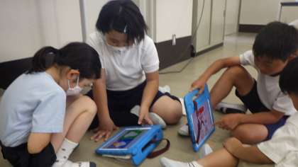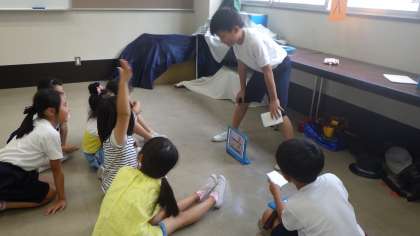 4年生が書いたミニ新聞を読み、4年生と一緒に絵本の世界を楽しみました。