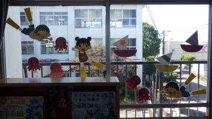 夏らしく楽しい図書室に 公開日 2023/07/06 更新日 2023/07/06 学校の特色ある活動 7月5日(水)に、図書館ボランティアさんが図書室の飾りを夏バージョンにしてくださいました。図書室に入った子どもたちは、涼しげで楽しい飾りをみて、わくわくすることでしょう。図書館ボランティアさん、ありがとうございました。
