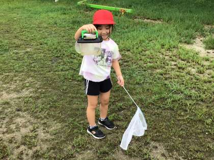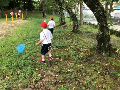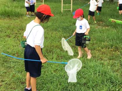 このところ蒸し暑い日が続き、雨が降る時間も多くありました。今日、雨のやみ間に1年生が生活科「むしとなかよし」で運動場に出て虫探しをしました。すべての1年生児童が網と虫かごを持って、伸びてきた草のあたりをよく探していました。見つけてもなかなかうまく網に入らず残念がる姿も多く見られました。