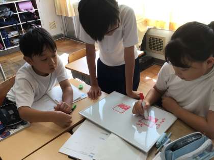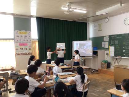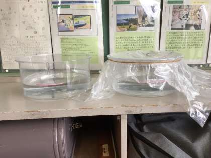 水は空気中にいくのか、どのような実験をするとよいかをグループで考え、発表しました。結果がどうなるか、楽しみです。