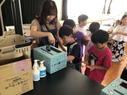 午前中に1年生が手洗いチェッカーを使って手洗いの仕方について学びました。蛍光剤の入ったローションを手に塗り、その後手洗いをします。手洗い後にブラックライトを使用して、手の洗い残しを光らせて確かめます。感染症や食中毒を未然に防ぐ1つの手段である手洗いがしっかりできるようにしたいですね。