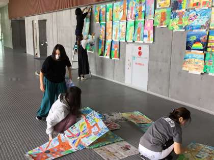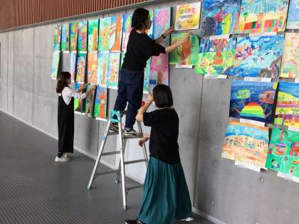 今日の午後、明日からスカイホール豊田で予定されている読書感想画作品展の準備をしました。4名の保護者ボランティアの皆さまに展示のお手伝いをしていただきました。全児童の作品が飾られました。保護者及び地域の皆さま、10月29日(日)までのわずかな期間の作品展ですが、ぜひご覧ください。ボランティアにご参加いただいた皆さま、お忙しいところありがとうございました。