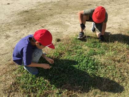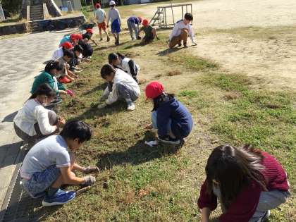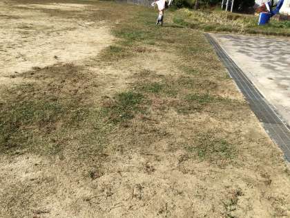 自分たちの大切な運動場の草を取りました。