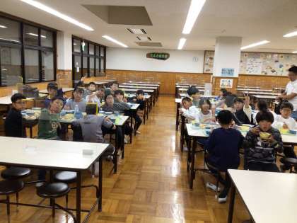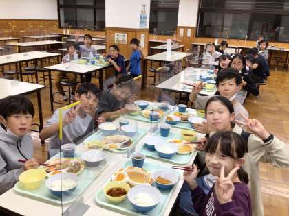 現在夕食をとっています。このあとはキャンプファイヤーの予定です。