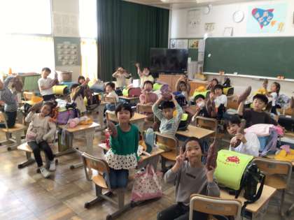 校舎の隣にある農園で様々な野菜を育てています。1年生と4年生が育てていたさつまいもが収穫の時期になり、さつまいも掘りをしました。自分の顔よりも大きなさつまいもがいっぱい出てきてみんなはびっくりでした。収穫したさつまいもをどのようにして食べるか、子どもたちとよく相談して決めたいと考えています。