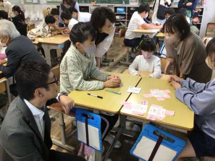 4年生 総合 とよたSDGsカードゲーム その1 公開日 2023/11/14 更新日 2023/11/14 各学年から ゲームを通して、豊田市のSDGsの現状を知り考えました。 区長さんや保護者のみなさんもゲームに参加していただきました。 豊田市の生物の絶滅危惧種の数は?1人が一年に出すごみの重さは? ペットボトルのリサイクル率の高さを豊田市の誇りだと感じたり、自分たちが考えた数値とはかけ離れた現実を知ったりして、自分たちのできることを積み重ねていく大切さを改めて実感しました。
