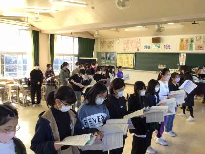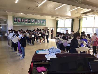 学年合同で歌の練習をしています。学習発表会に向けて、歌うだけではなく少しずつ動きもついてきました。楽しみながら頑張っています。