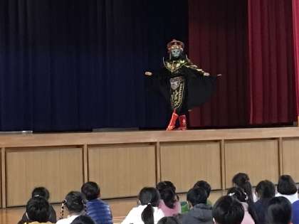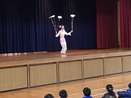 3・4校時にチャイナ企画のみなさんをお招きして芸術鑑賞会を行いました。中国で3千年も続く伝統芸術「皿まわし」「変面」など、中国雑技のたくさんの演目を見せていただきました。普段あまり見ることのない芸術にふれて、子どもたちも笑顔や驚きの表情で、十分に楽しむことができました。